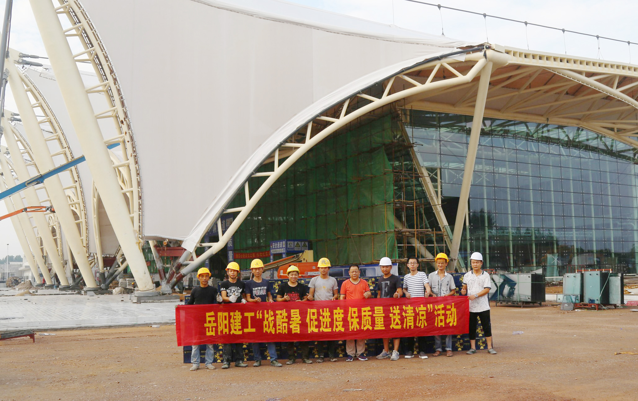 在岳陽市中醫(yī)院項目、三荷機場項目等工地現(xiàn)場,當揮汗如雨、緊張工作著的職工們接過公司代表送去的飲用水時,臉上露出了開心的笑容。員工們紛紛表示,將以更大的熱情投入到建設(shè)工程當中,保質(zhì)保量按時完成節(jié)點任務(wù),為公司爭光添彩。