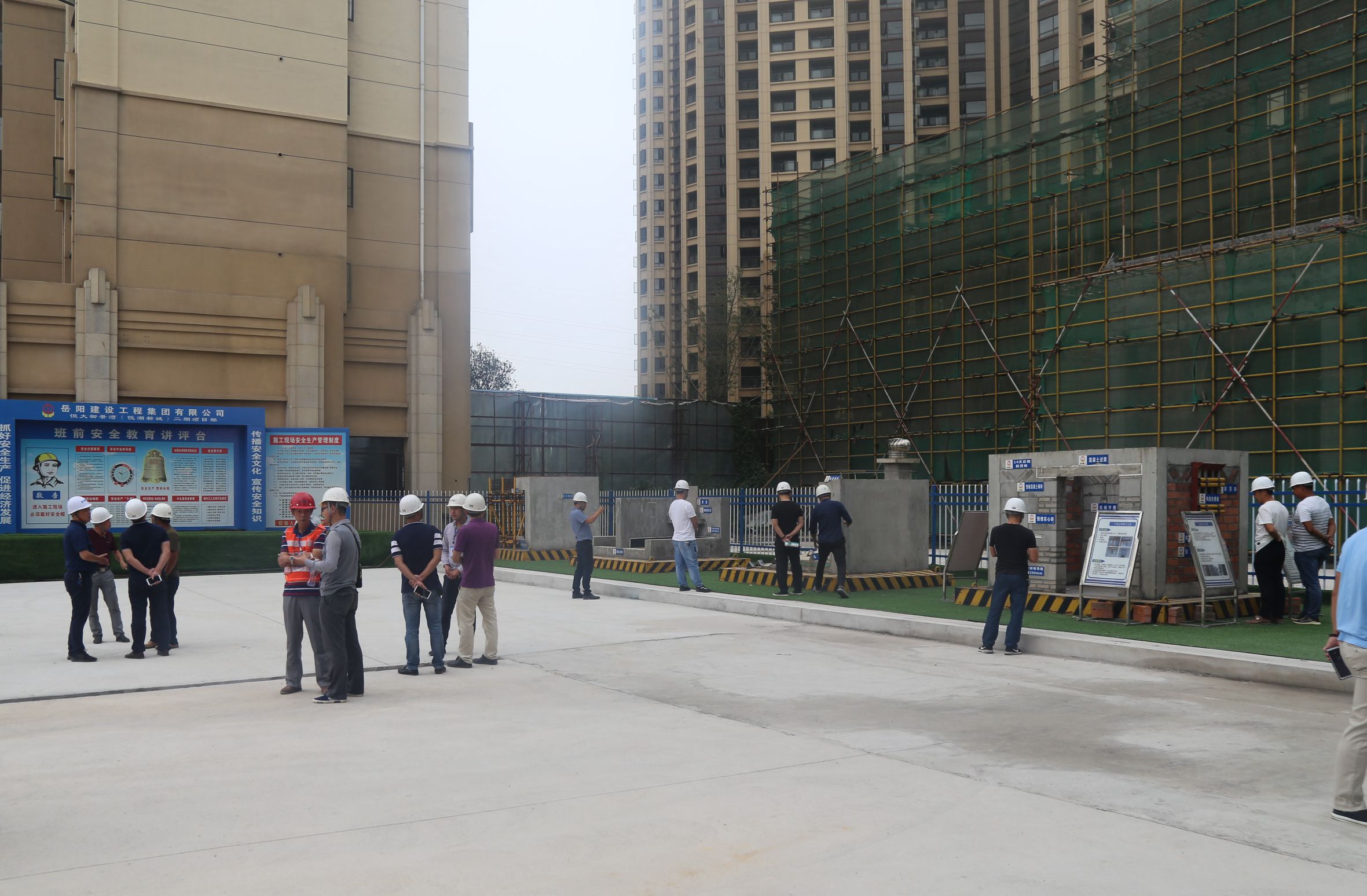 為全面提升公司項目綜合管控能力,加強專業(yè)人才隊伍建設,9月17日,公司在恒大御景灣二期項目召開了現(xiàn)場觀摩會,對該項目的質(zhì)量技術、安全生產(chǎn)、現(xiàn)場文明及工程進度進行全面觀摩。集團公司監(jiān)事王立新、副總經(jīng)理李欣云、總工程師周一波及恒大地產(chǎn)相關負責人、公司有關職能部門負責人、各項目主要負責人共40余人參加。