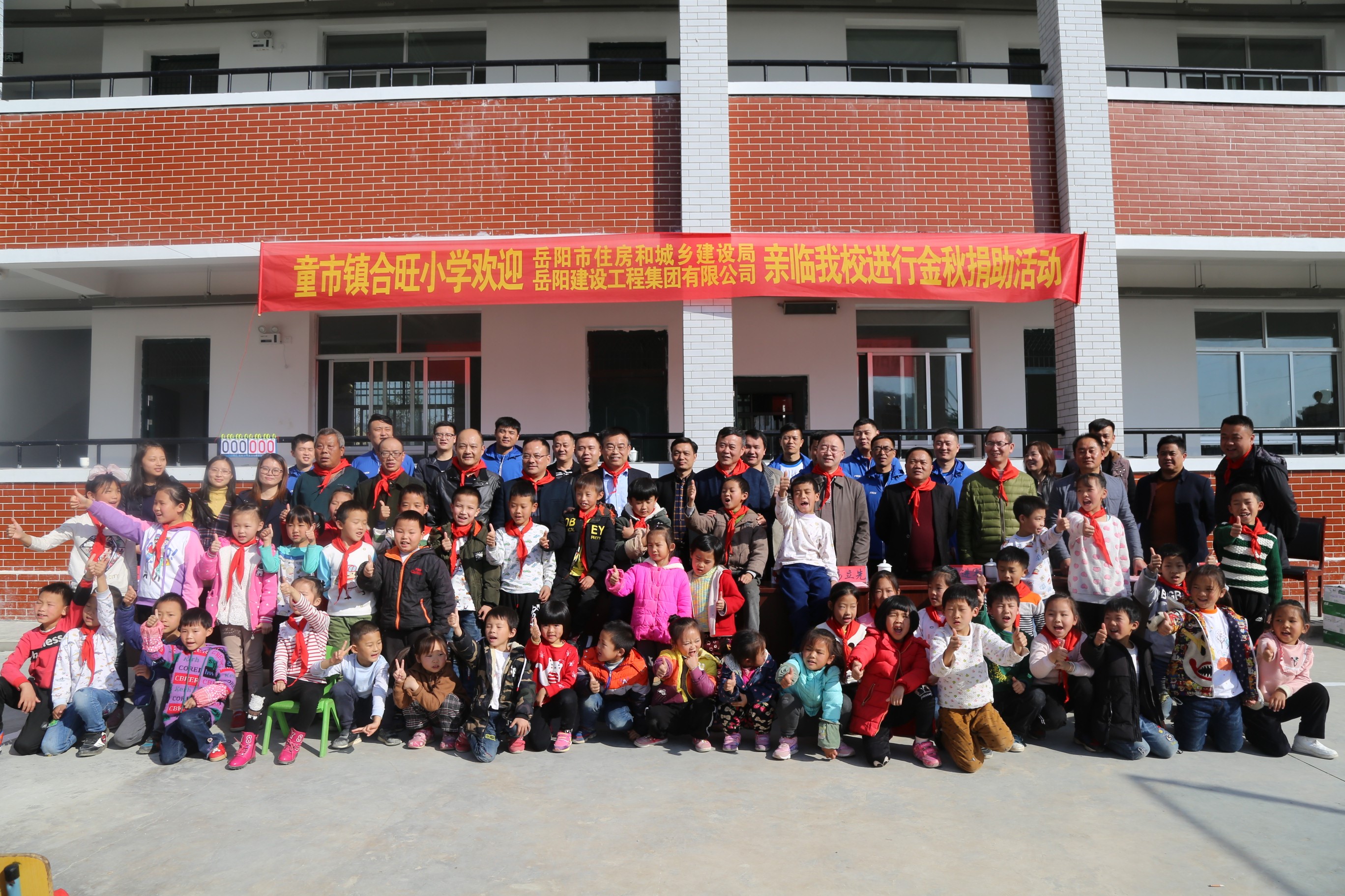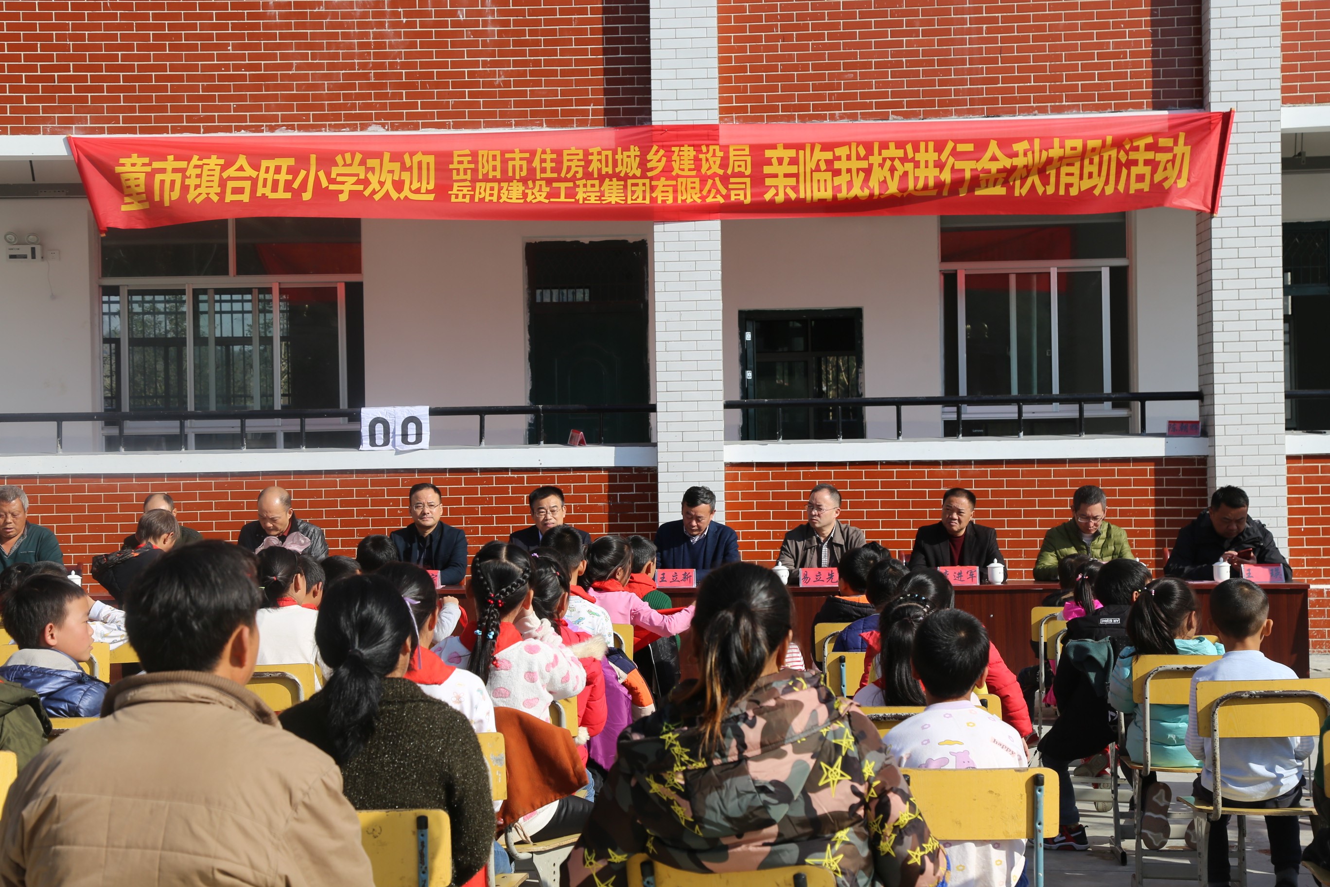 “歡迎歡迎,熱烈歡迎!”11月30日上午10點(diǎn),座落在大山里的平江縣童市鎮(zhèn)合旺小學(xué)里傳來陣陣整齊又清脆的呼聲,這里正在進(jìn)行由岳陽市住房和城鄉(xiāng)建設(shè)局和岳陽建設(shè)工程集團(tuán)有限公司聯(lián)合開展的“金秋助學(xué)”活動。岳陽市住房和城鄉(xiāng)建設(shè)局黨委副書記、副局長葉建國率單位晏桃保、胡列宇、易立先、葉湘林、劉子帆等人蒞臨現(xiàn)場,監(jiān)事王立新代表公司參加了此次捐贈活動。