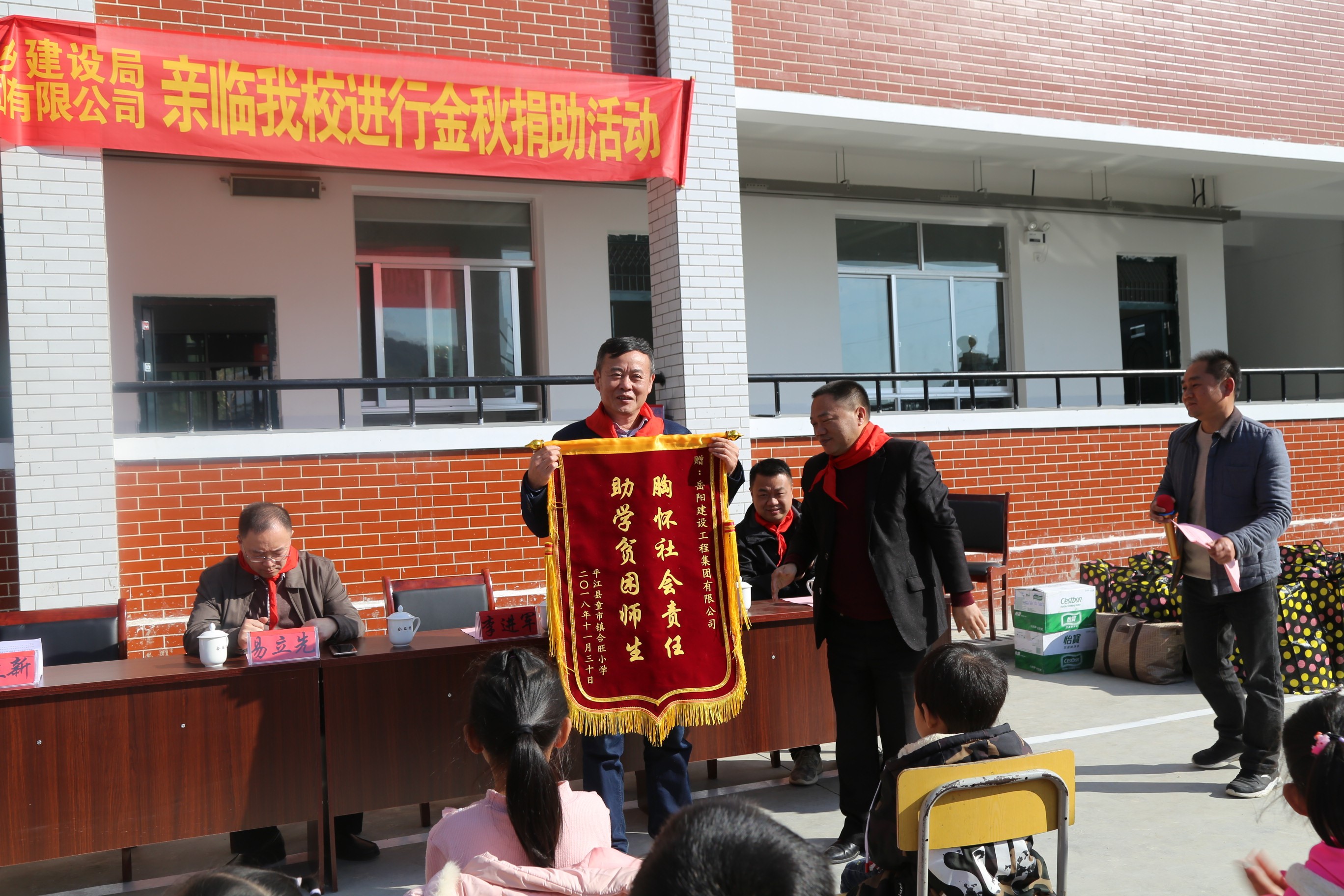 活動中,平江縣童市鎮(zhèn)合旺小學(xué)吳校長將一面寫有“胸懷社會責(zé)任,助學(xué)貧困師生”的錦旗交到我公司監(jiān)事王立新手上,代表全校師生表達(dá)對岳陽建工集團(tuán)捐資助學(xué)的感激之情。