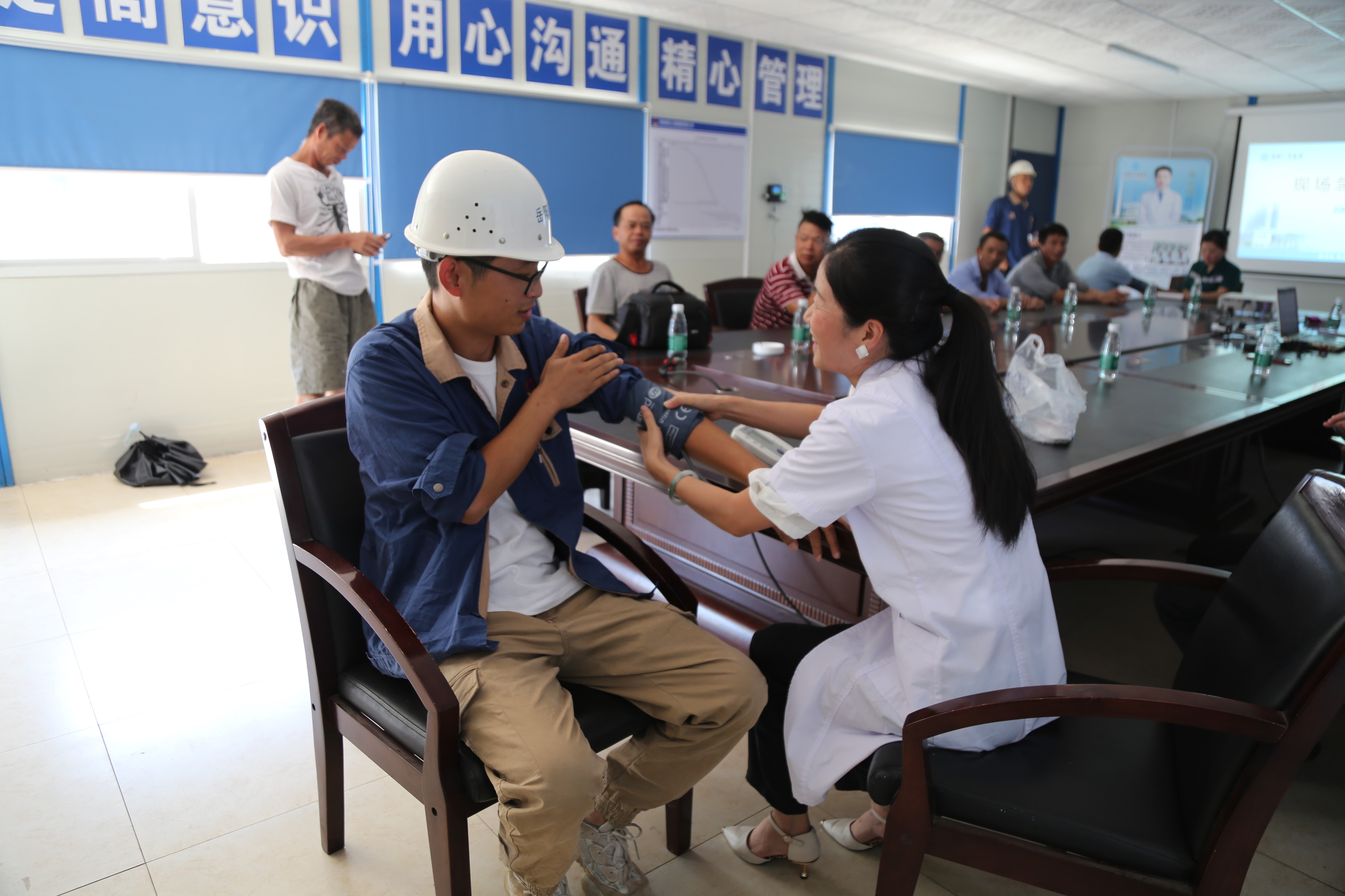本次急救知識(shí)培訓(xùn)采用理論與實(shí)際操作相結(jié)合的方式進(jìn)行。首先,專業(yè)急救人員為全體工人免費(fèi)測量了血壓,然后針對建筑工地常見外傷、骨折等事故情況,通過PPT為工人們詳細(xì)講解了如何正確判斷傷員傷情,如何對傷員進(jìn)行止血、包扎、固定、搬運(yùn),以及如何進(jìn)行心肺復(fù)蘇等相關(guān)的急救知識(shí);針對當(dāng)前的高溫天氣,特別講解了中暑的癥狀、中暑救治方法、如何預(yù)防中暑等知識(shí)?;顒?dòng)中,急救人員邀請工人參與互動(dòng),現(xiàn)場進(jìn)行了急救操作演示,指出操作方法對錯(cuò),點(diǎn)明急救注意事項(xiàng),以便工人們加深印象,更好地掌握正確的急救技能。