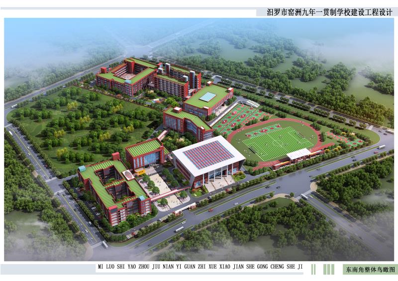 汨羅市窯洲中學(xué)建設(shè)項目是一所完整新建的現(xiàn)代化新型學(xué)校,是汨羅市委、市政府重大決策部署,是落實《汨羅市教育振興三年行動計劃》、解決當(dāng)前城區(qū)教育“大班額”等突出問題的具體舉措。工程位于汨羅市歸義鎮(zhèn)窯洲社區(qū),總用地面積77500m2,建筑總面積為89580.72m2,工程競標(biāo)價為25396.4881萬元。整個工程建設(shè)項目包括:7棟單體建筑(中學(xué)教學(xué)樓、圖書館、藝體樓、科技館、師生食堂、學(xué)生宿舍、小學(xué)樓)、地下室、運動場看臺、田徑運動場、足球場、籃球場等、連接各棟樓的連廊及附屬工程的土建和裝飾裝修、節(jié)能、消防等。