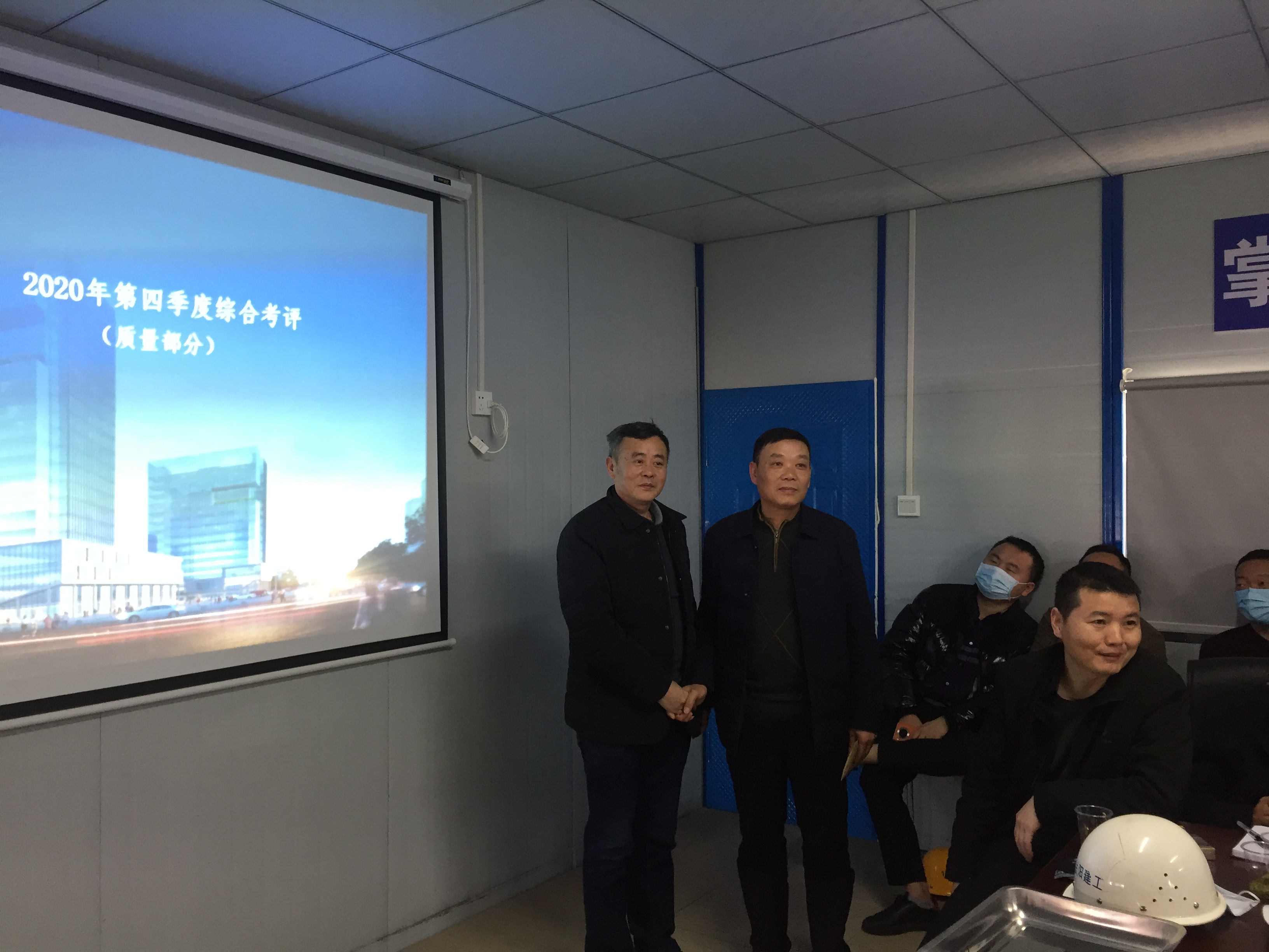 在第四季度項目綜合考評中,岳陽市體育中心(一組)、保靖文化藝術(shù)中心、八字門小學(xué)改擴(kuò)建工程三項目分獲一、二、三名,公司在會上對以上項目進(jìn)行表彰的同時,對落后項目也進(jìn)行了通報批評,并激勵各項目向優(yōu)秀項目學(xué)習(xí),取長補短,爭取打造更多優(yōu)質(zhì)工程。