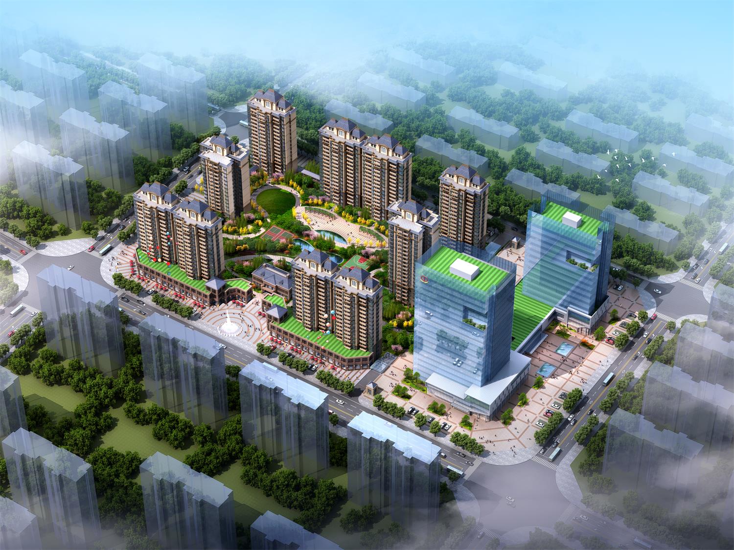 圖三:岳陽建工集團(tuán)總部經(jīng)濟(jì)大樓項目整體效果圖