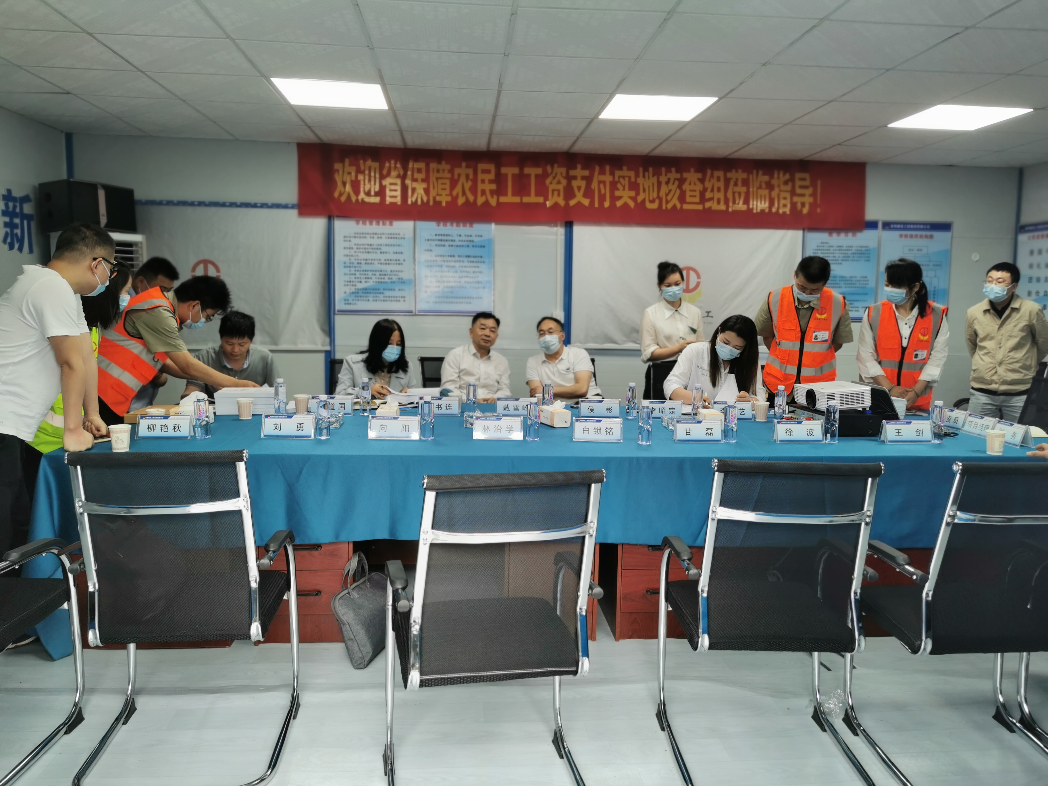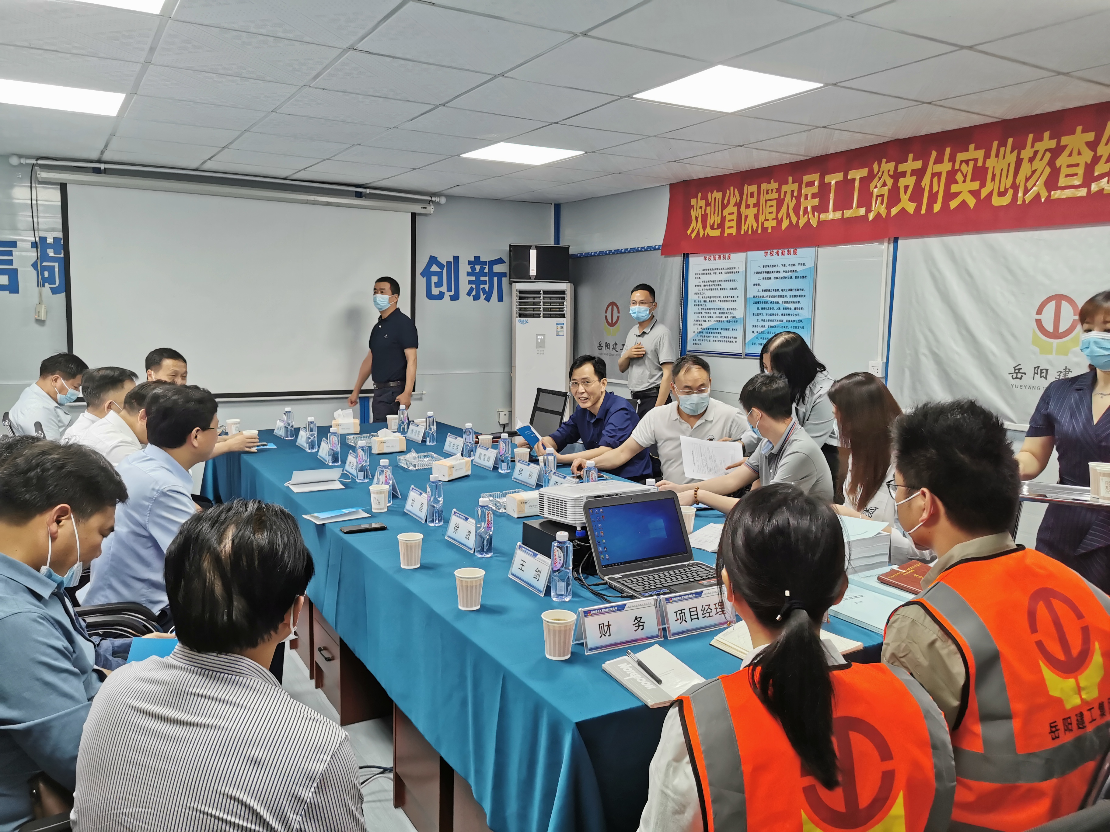 5月9日,湖南省保障農(nóng)民工工資支付工作實地核查組一行蒞臨公司湘陰中醫(yī)院項目實地核查指導(dǎo)農(nóng)民工工資支付保障工作。岳陽市政府、市國資委、市人社局、市住建局等政府部門相關(guān)領(lǐng)導(dǎo)及公司相關(guān)高層領(lǐng)導(dǎo)、公司相關(guān)部門及項目部管理人員陪同核查。