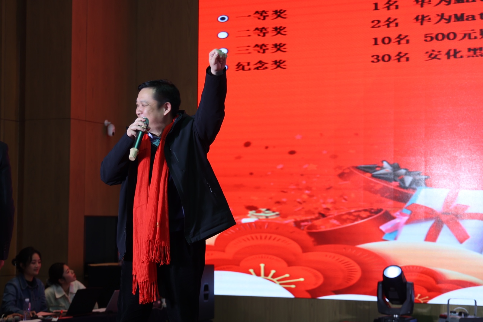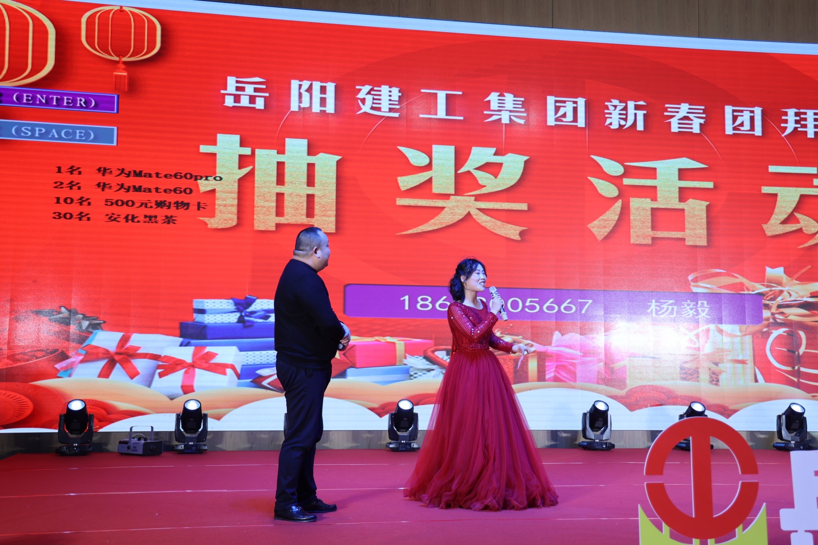 隨后,全體人員歡聚一堂,觀看了由公司員工組織的文藝匯演。 伴隨著鼓舞的熱鬧開場,2024年新春年會文藝匯演在歡樂的氛圍中正式拉開帷幕。整臺晚會內(nèi)容豐富,精彩紛呈,歌曲、舞蹈等一個個節(jié)目銜接緊湊,燈光、音響配合完美。最激動人心的是穿插在節(jié)目表演過程中一、二、三等獎及紀念獎的抽取活動,將現(xiàn)場氣氛一次次推向高潮,幸運的員工獲得了公司精心準備的華為手機、購物卡、安化黑茶、紅包雨等禮物。整個現(xiàn)場氣氛熱烈、歡快,大家頻頻舉杯,相互祝愿。