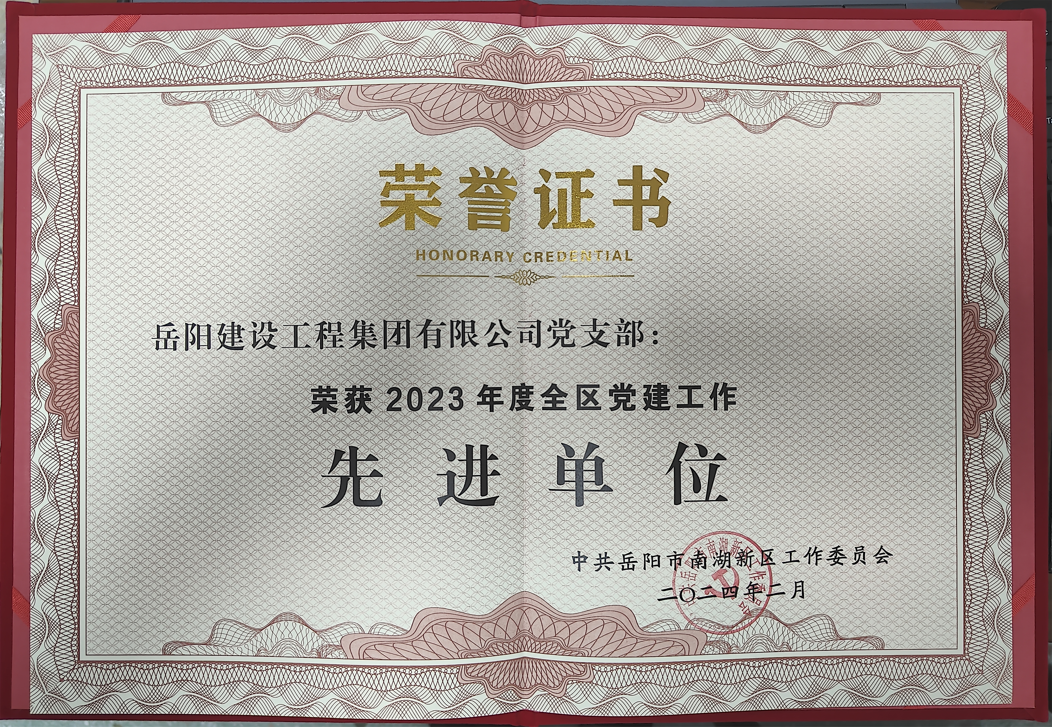 岳陽建工集團黨支部獲評2023年度全區黨建工作先進單位