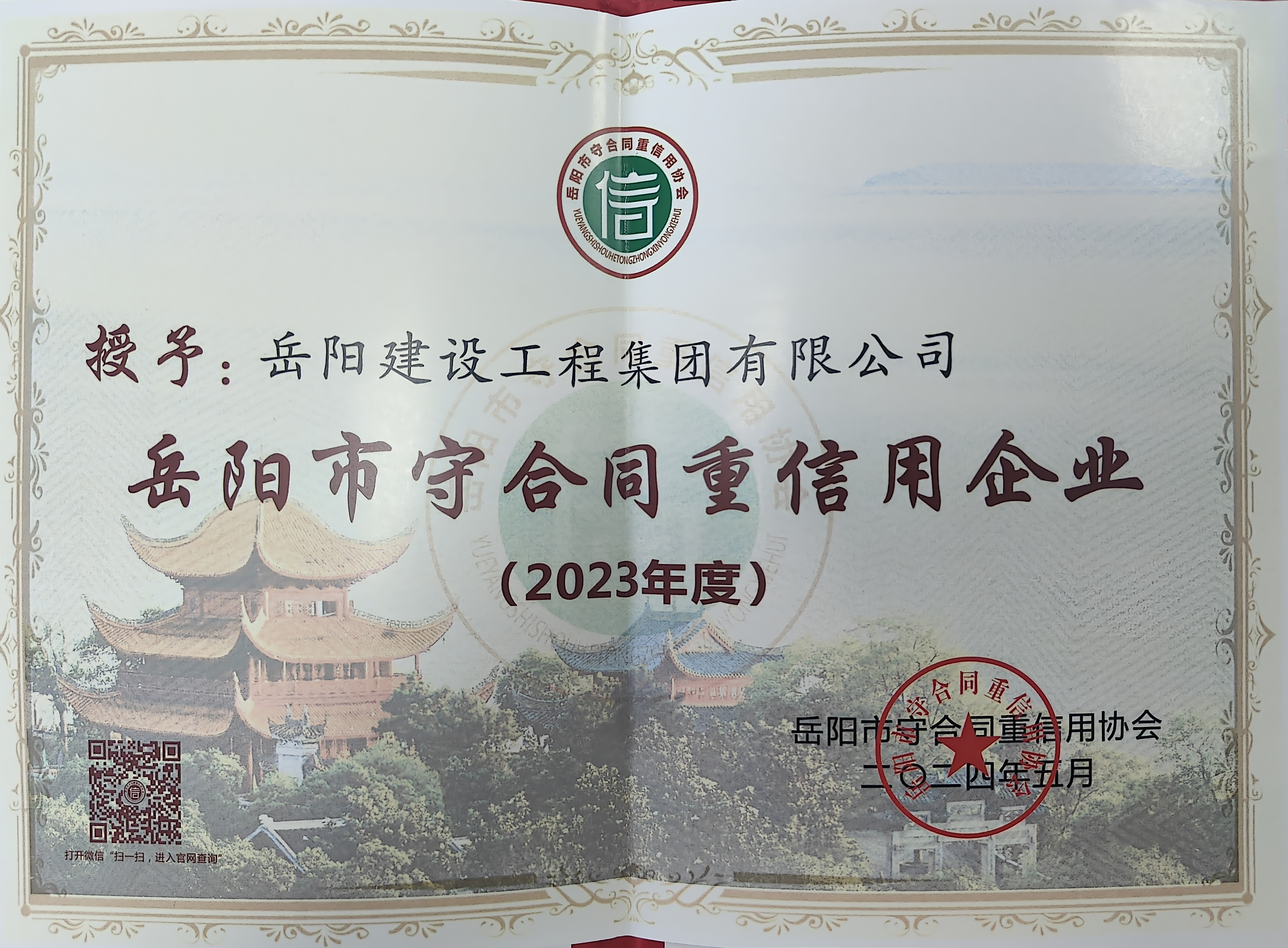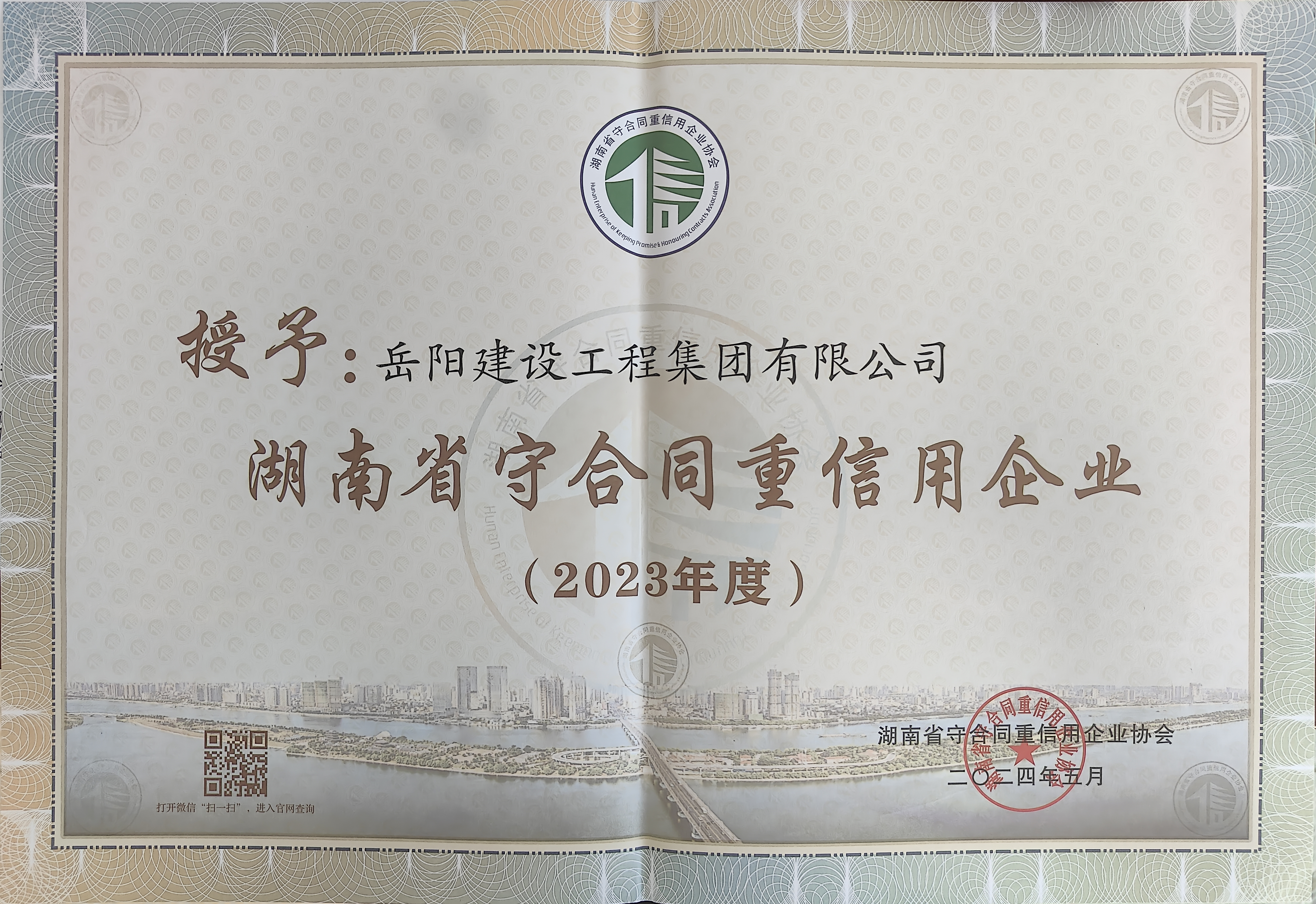 日前,在2023年度湖南省守合同重信用企業發布儀式上,公司獲評"湖南省守合同重信用企業",同時獲評2023年度"岳陽市守合同重信用企業"。